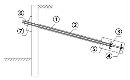 A: このアンカーは回転噴射グラウト注入工法を採用、パイプは不要です。超硬質土層を直接推進できない場合は、掘削用ビットを使用し掘削してから回転噴射注入施工をします。
