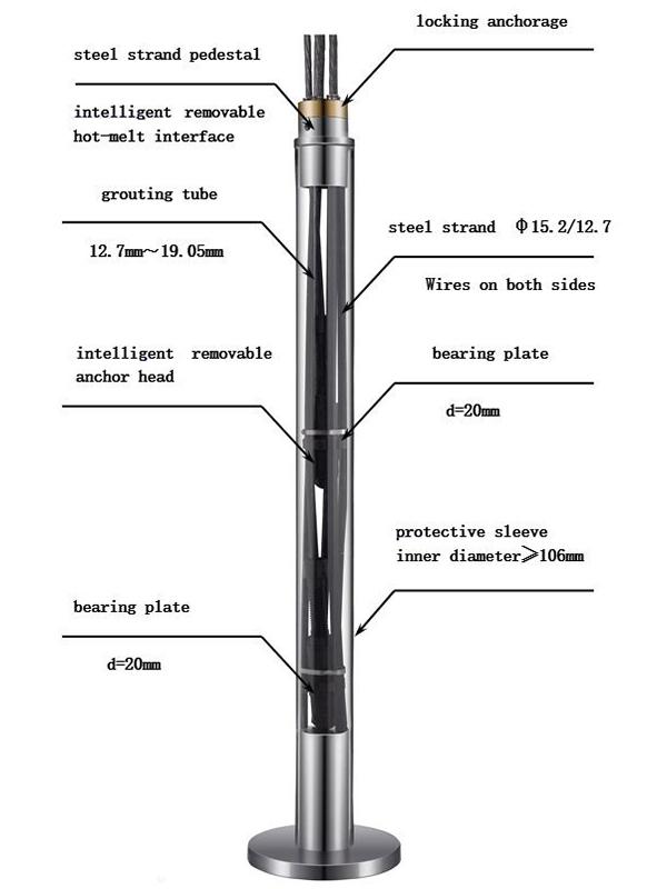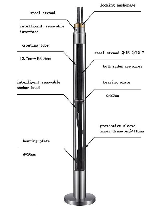 RZI仮設除去式アンカーは、リアルタイムアンカーの力の計測機能と除去回収機能を兼ね備え、大型且つ重要な土台と、のり面に応用されるグラウンドアンカーです。このアンカーの荷重計は定着部のヘッドにあり、周囲は充填物に覆われ防水保護の下で、より優れた計測精度と耐久性能を有します。また、従来のアンカー工法は工事終了後テンドンを土壌に残し、鋼材の無駄使いと土壌汚染など問題がありました。しかもテンドンは地中障害物となって空間の再開発も困難になり、テンドンを取り除く費用もかさみます。当社のRZI仮設除去式アンカーはホットメルト技術を使い、役割を果たしたテンドンを全て除去回収することができます。
