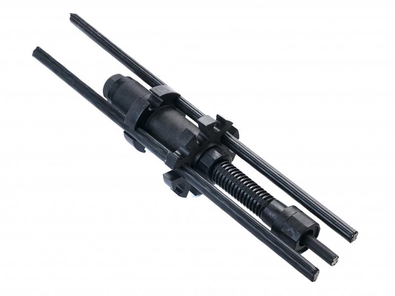 A: この製品を単一使用する場合、最大本数は5本で、アンカーロッドの最大内径は100mmです。本数の増加が必要となる場合は当社のアンカーシステムをご参考ください。