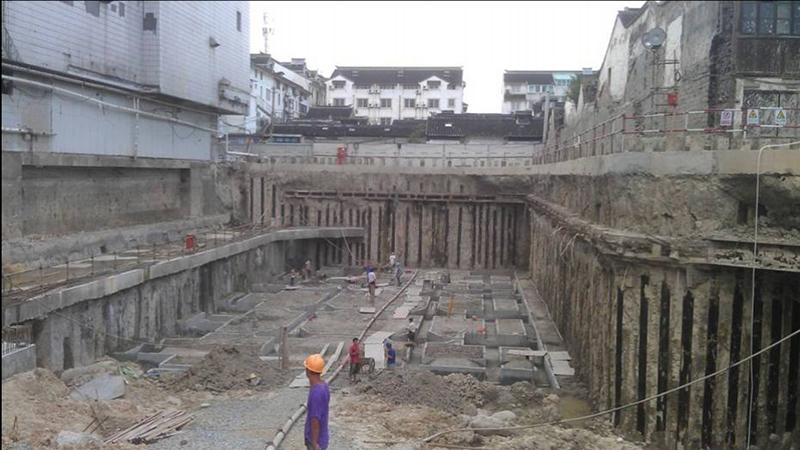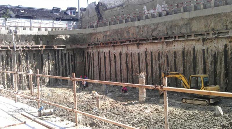 私たちは、基礎ピットが囲まれた、自然の基盤を持つ歴史的建造物とその間に稼動していた商業ビルがあり、建設中に困難に直面しました。 両側には4mの広い道路があり、建設中、アンカーはその間に引き抜き力を提供して、歴史的に保存された建物に影響を与えないように土壌の乱れに対する影響を最小限に抑えなければなりませんでした。 構築後、アンカーを回収して完全に除去しなければなりません。我々はその状況に応じて、ホットメルト除去アンカー技術と、統合されたプレストレストアンカーを使用しました。 最終的には、敷地と歴史的建造物を保護し、アンカーを解体してリサイクルする使命を果たしました。