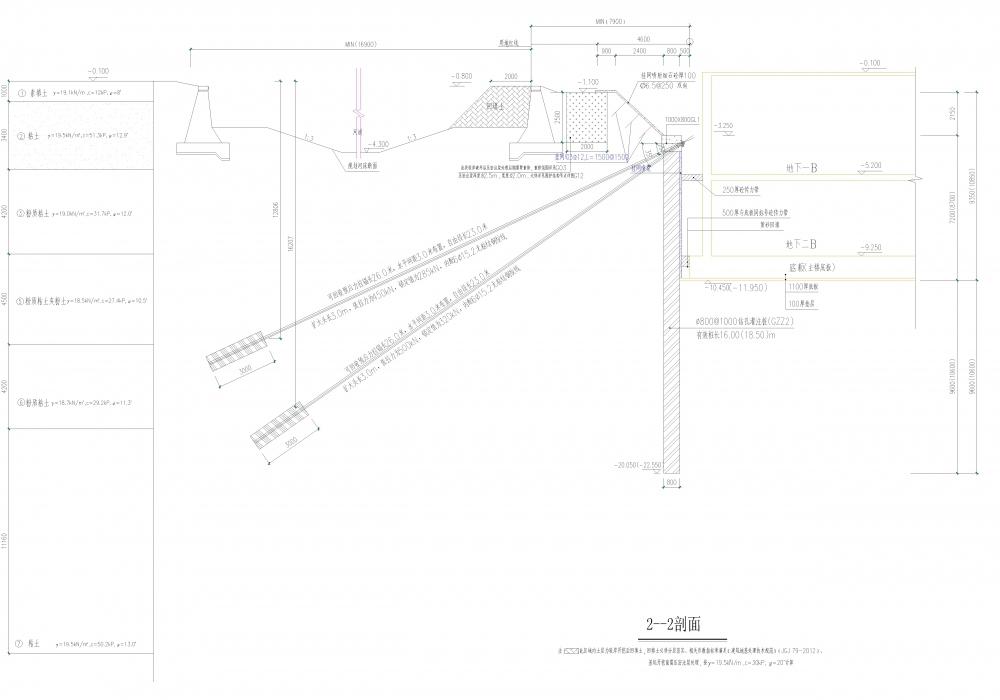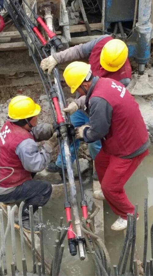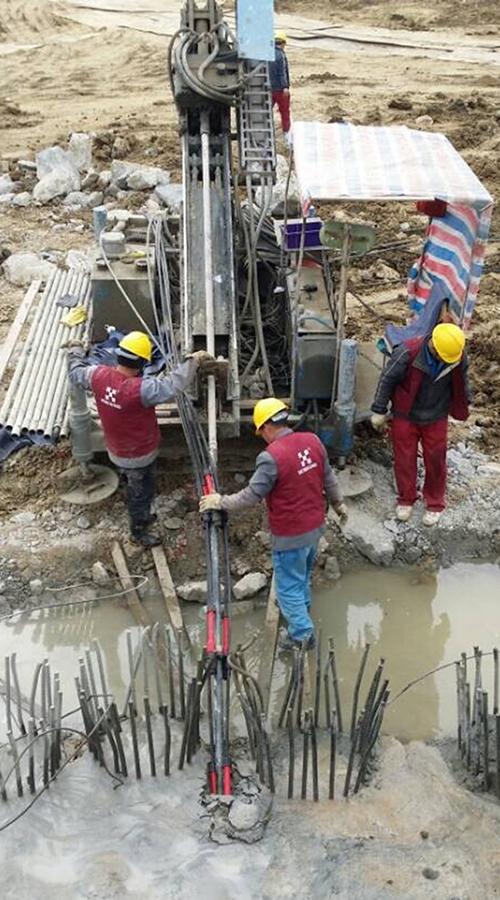 このプロジェクトは現場打ちのパイルと圧縮応力分散アンダーレイアンカーによって支えられています。 そのうち、それぞれ長さ26mのアンカーが308個使用されています。この工法により、このプロジェクトから約1000万元が節約されました。 また建設期間を2ヶ月短縮しています。 地下アンカーの端部支持能力は、従来のアンカーよりも30%〜50%の引き抜き力を有します。 河川の下約7メートルのアンカーは、まだ810kNの引き抜き力を達成します。